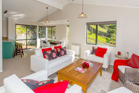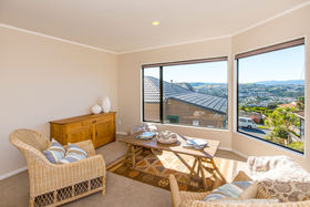 This immaculately presented four bedroom home is spacious, light and airy. It sits on an elevated rear site with views across the valley and to the harbour. The present owners searched long and hard for a home which would accommodate their need for semi- independent spaces for a growing family. They found it here and you can too. The kitchen adjoins a generous sized dining/family room with easy flow to a small private patio. For those much needed quieter times, you can retreat to the second living room, enjoy the scenic outlook and possibly enjoy a tipple from your very own wine cellar! RV$495,000