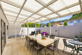 Excellent large family home with large deck, private outdoor spa, courtyard for entertainment & late sun. 2 living areas - family room, open plan lounge & kitchen.