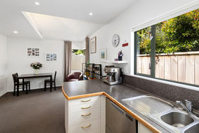The good-sized kitchen is open plan with the dining area - wonderful for cooking up a storm for the kids! Or why not take the party outside to the large, fully-fenced, private patio and garden. Many days and nights will be spent out here - BBQs, relaxing and watching the kids play, or a spot of gardening. This is bliss! Or relax in the lounge which you can shut off in winter to keep in that warmth from the heatpump.